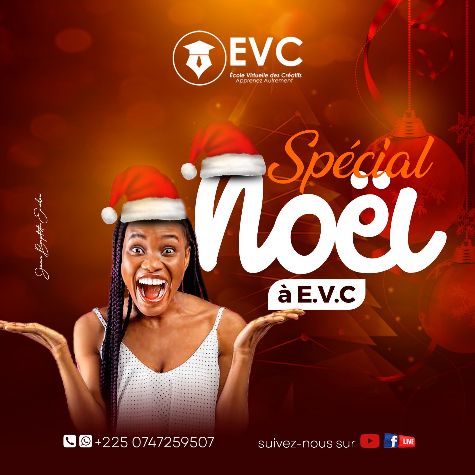 L’École Virtuelle des Créatifs (EVC) est une référence incontournable en formation digitale. Reconnue par l’État ivoirien, cette SARL mise sur une pédagogie 100 % Ultra-pratique, axée sur les besoins réels du marché. EVC forme en Design Graphique, Community Management, Social Media Management, Gestion Informatique et Intelligence Artificielle Appliquée.